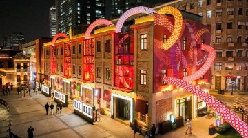 1月2日在上海市“今潮8弄”拍摄的蛇年灯光艺术装置(无人机照片)。当日,位于上海市虹口区四川北路…