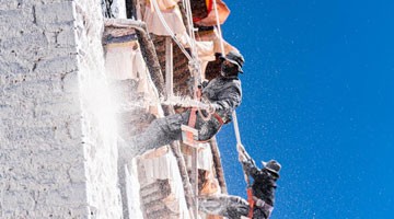 10月29日,一名志愿者在布达拉宫喷洒涂料。近期,西藏布达拉宫开始进行一年一度的外墙粉刷工作。布…