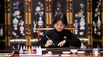 胡昕在工作室内创作(12月10日摄)。金漆镶嵌是中国传统漆器的重要门类,在中国的漆器百花园中独树…