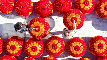 12月16日,在河北省石家庄市藁城区屯头村一家宫灯厂,宫灯艺人在制作大型宫灯。连日来,河北省石家…