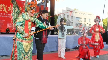 “一声炮响,义律埋城,三元里顶住……”11名女舞蹈演员手中鼓槌上的红绸在空中如猎猎旌旗,用粤语喊…