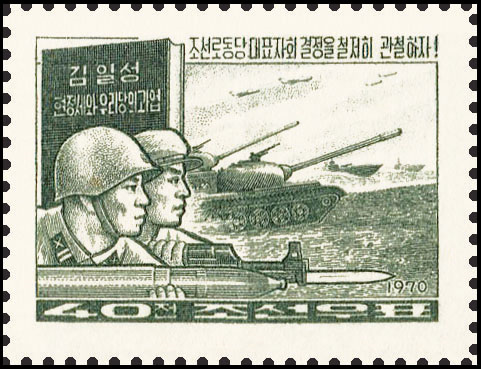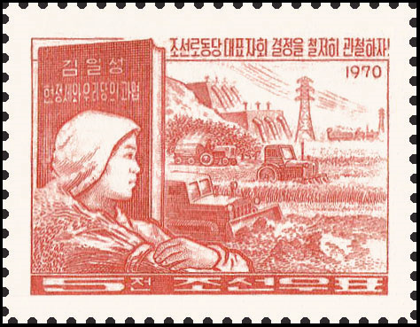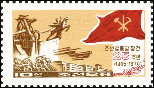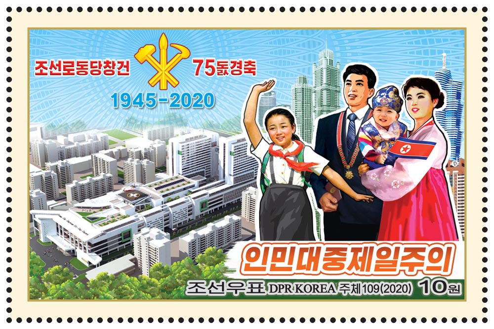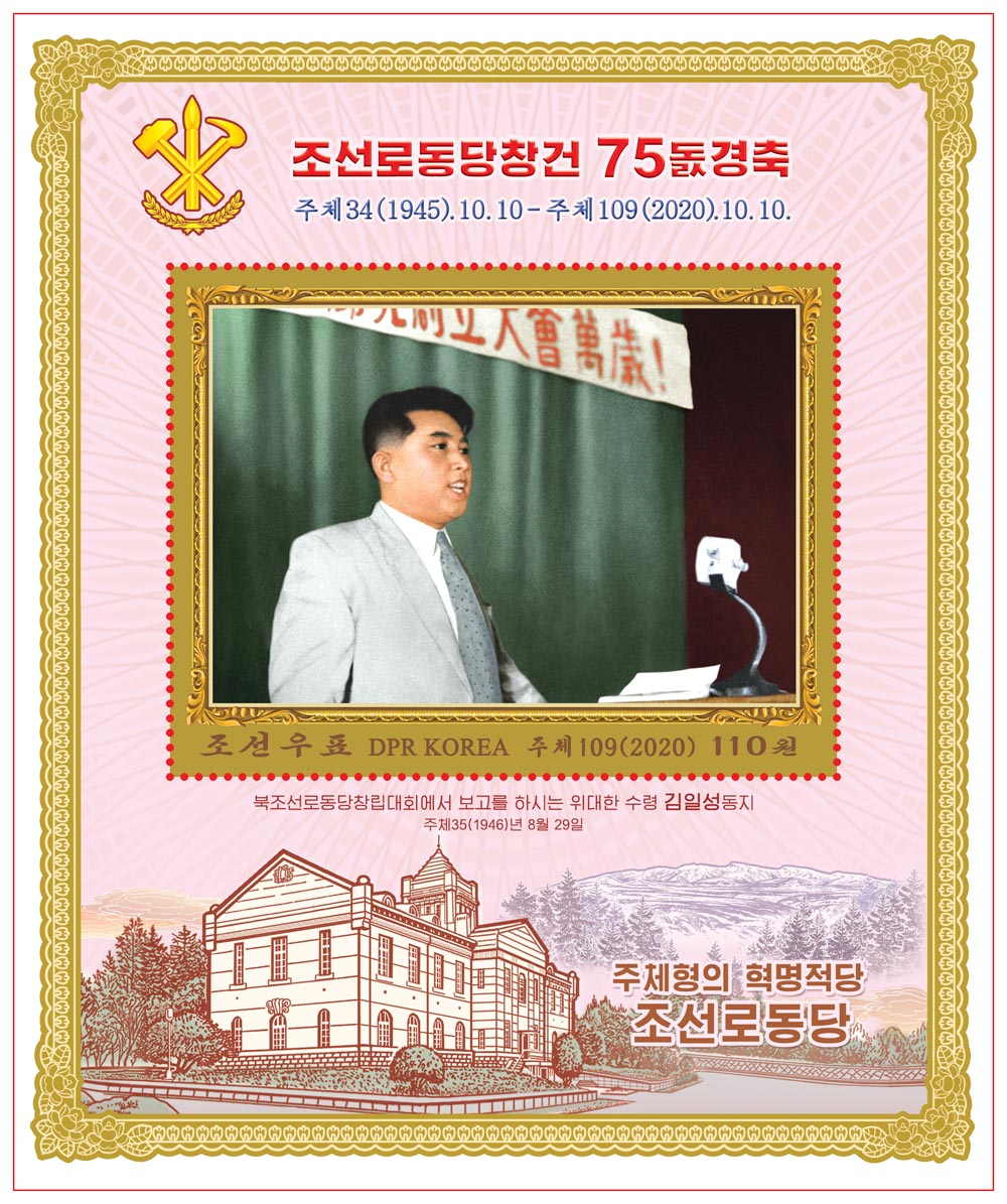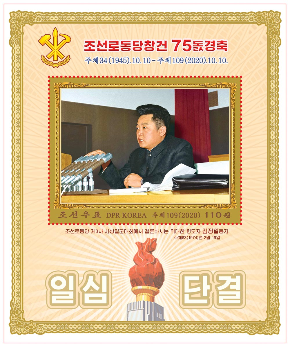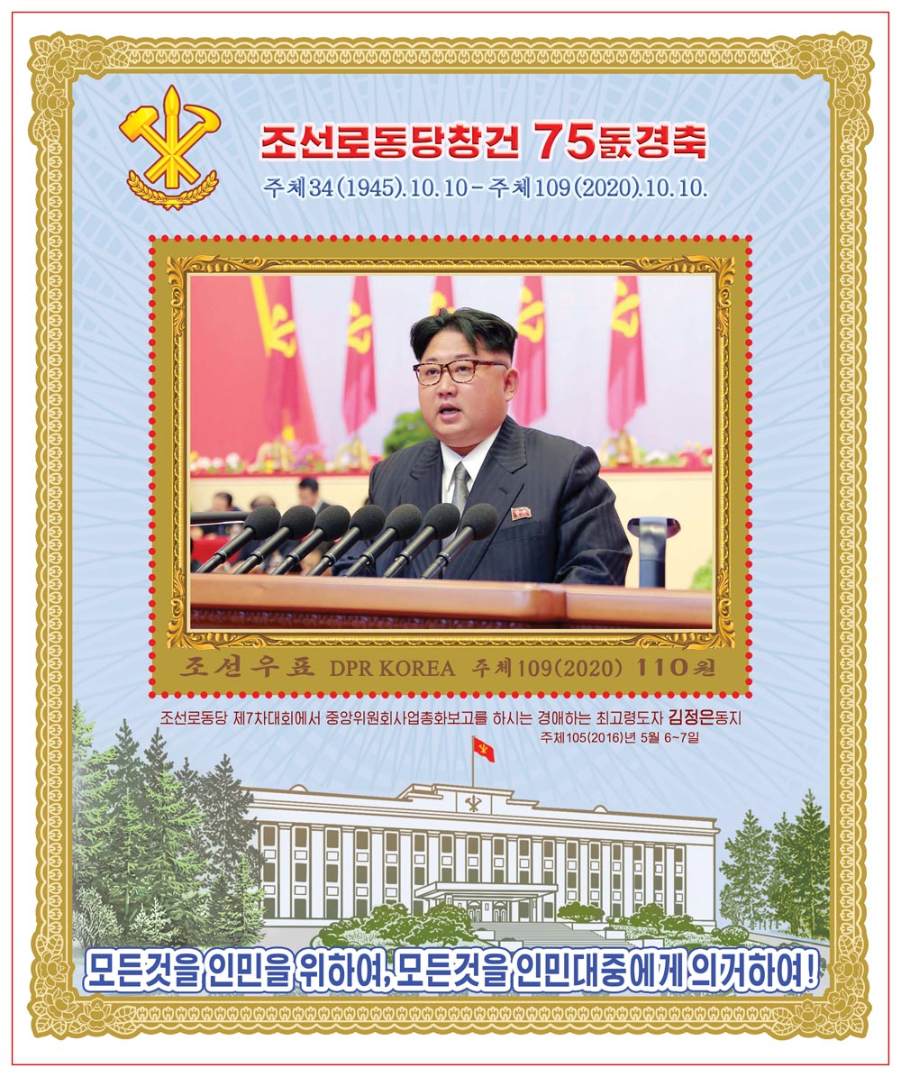 值朝鲜劳动党建党75周年之际,朝鲜民主主义人民共和国举办了《朝鲜劳动党,光荣的75年》邮票展,以下为展出的邮票图片。