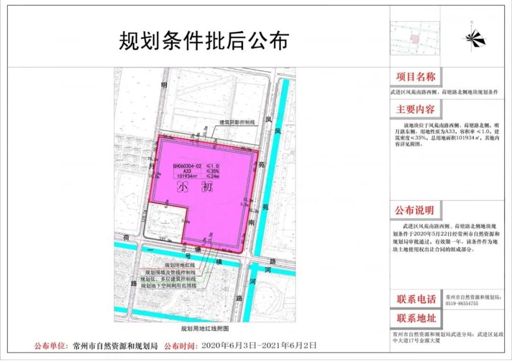 地块位于凤苑南路西侧,荷塘路北侧,明月路东侧,具体位置位于武进西太湖,星河丹堤三期东侧,总用地面积101934㎡,拟建设一所小学和一所初中。