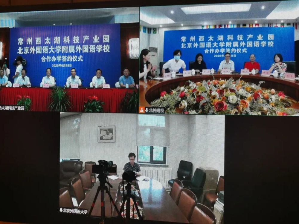 6月28日下午,常州西太湖科技产业园与北京外国语大学附属外国语学校举行合作办学云上签约。副市长、武进区委书记李林,北京外国语大学附属外国语学校校友会名誉会长周志兴,北京外国语大学校长助理、北外附校校长林卫民出席活动。