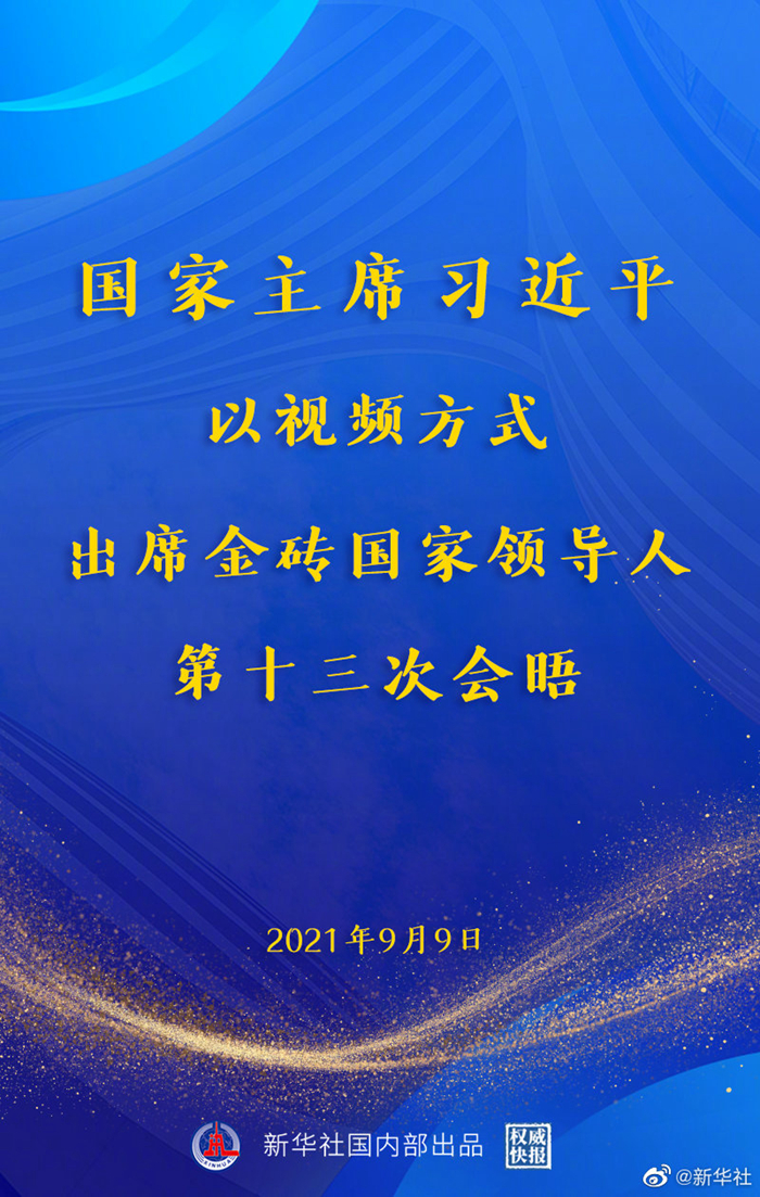 9月9日晚,国家主席习近平以视频方式出席金砖国家领导人第十三次会晤。