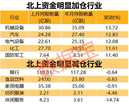北上资金重点加仓机械设备行业