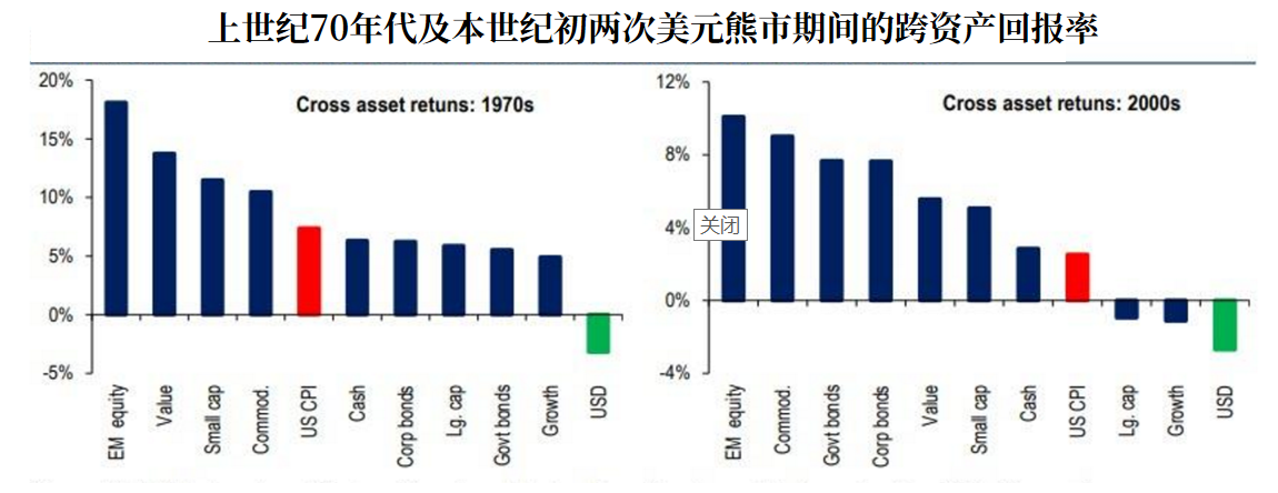哈特尼特指出,仔细分析历史上的几次美元熊市后可以发现,当美元大幅贬值后,新兴市场股票、大宗商品、小型股和价值型股票的表现往往会非常突出,一如上世纪70年代和本世纪头十年那样。