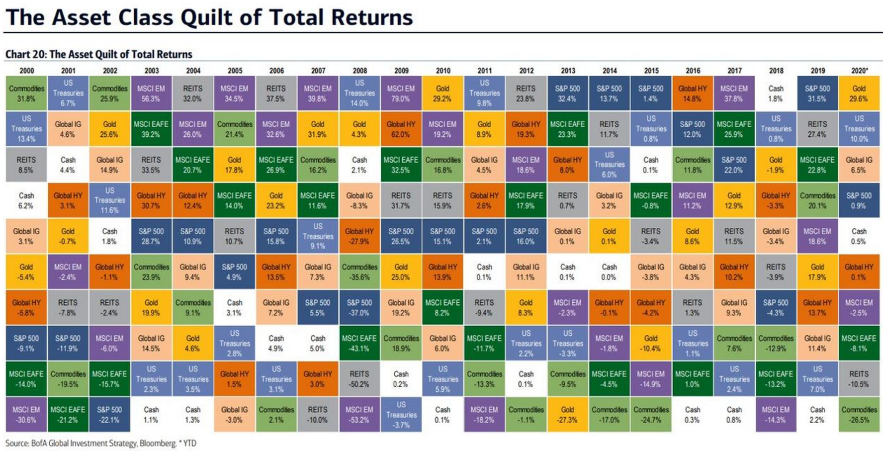 “现在的市场是怎么样的?我们可以看看这一系列数据:全球GDP损失超过10万亿美元、美国预算赤字占第二季度GDP的40%、货币市场基金规模超过5万亿美元、美国企业通过大举发债筹资2.7万亿美元、全球股市市值在暴跌30万亿美元后反弹25万亿美元,而黄金在这期间一直是回报率最高的资产。但随着美元急剧贬值,这一切都可能发生改变。”