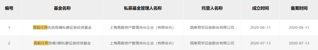 值得注意的是,高毅资产备案的产品中,新加入基金经理吴任昊管理的产品——“高毅任昊致福3期私募证券投资基金”,已于7月13日在协会备案。