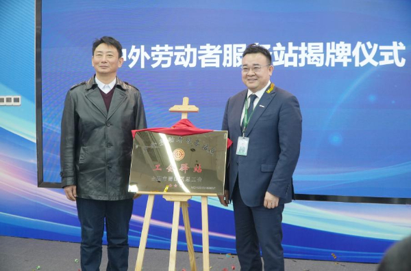 合肥市总工会权益保障部部长李桂实、合肥链家总经理李作好共同揭牌