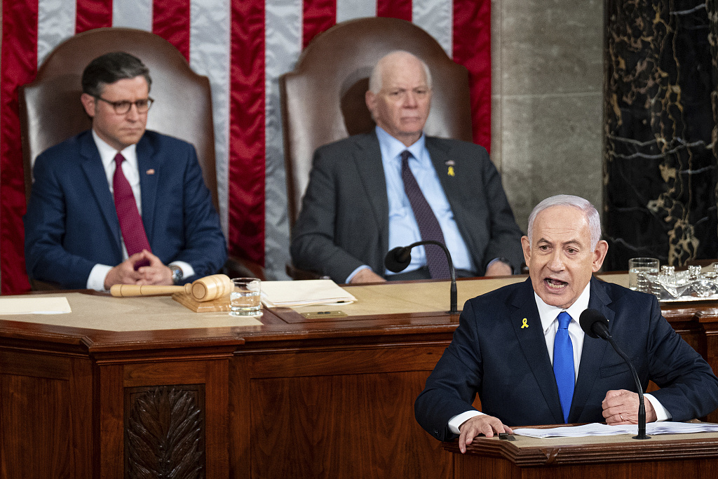 以色列总理内塔尼亚胡当地时间24日在美国国会发表演讲。(视觉中国)