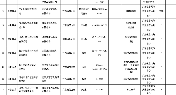 其中,本次抽查发现29款家具产品不合格,涉及广东省斯帝罗兰家居有限公司、丝涟床具(上海)有限公司等标称生产单位。不合格项目为甲醛释放量、结构安全性、木工要求、耐久性要求、上层床安全栏板、床铺面、力学性能-推拉构件强度、力学性能(桌类)稳定垂直加载稳定性试验,垂直和水平加载稳定性试验、木制件用料、加工(内部)、表面理化性能(漆膜)抗冲击、力学性能(椅凳类)椅背静载荷试验。其中,甲醛释放量为安全项目。