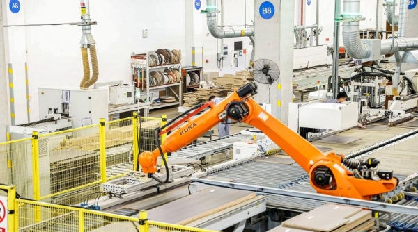 聚焦智能生产能力。志邦家居4.0智能工厂全车间采用德国进口设备,通过自动化和智能化技术,实现了原材料到成品的高效精准生产。从原材料仓库的无缝对接、机械臂的精准搬运、到柔性封边技术的自动化升级,确保生产效率和产品质量同步提升。整体化智能产线大大优化了用户体验,从下单那一刻开始齐户齐套快速交付的承诺也建立在志邦强大的生产能力基础之上。
