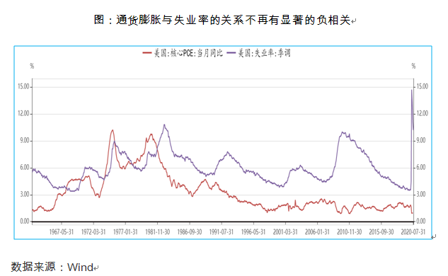 面对美国疫情后可能面对的低增长趋势,会有越来越多的声音呼吁放松财政政策——以增加“政府需求”的方式刺激经济,弥补货币政策不足。而宽松的财政政策可能从两条路径上来影响通胀:第一,降低社会贫富差距,实现普通居民收入提升,从而提升需求;第二,在增加“政府需求”和集中救助过程中,政府可能过多干涉劳动力市场和商业活动,降低经济活动效率,引发通胀结构性上升。