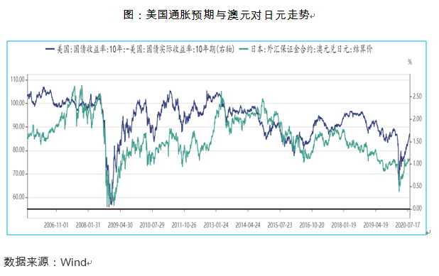 可能的选择还包括做多澳元对日元汇率。澳大利亚作为全球商品出口国,澳元作为风险货币与商品价格之间有很强联系,经济的复苏和通胀的上升往往有利于风险货币澳元回升。