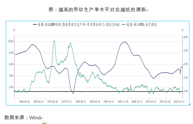 观察1980年以来美国非农劳动生产率与核心CPI的相关性也可以看到,越高的劳动生产率对应了越低的通胀水平;而上世纪60~80年代数轮通胀高企的背后,则都伴随着劳动生产率的快速下降。