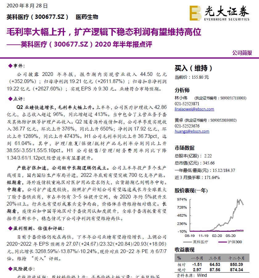 7月份,深股通席位再现英科医疗龙虎榜,分别于7月17日及7月28日净买入5257.91万元及1319.17万元。此外7月14日龙虎榜单显示,深股通席位当日净卖出2786.73万元英科医疗。