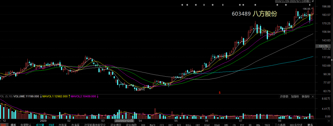 从股价表现来看,八方股份年内涨幅已达90.54%,并于周二当日盘中创下196.88元每股的新高。