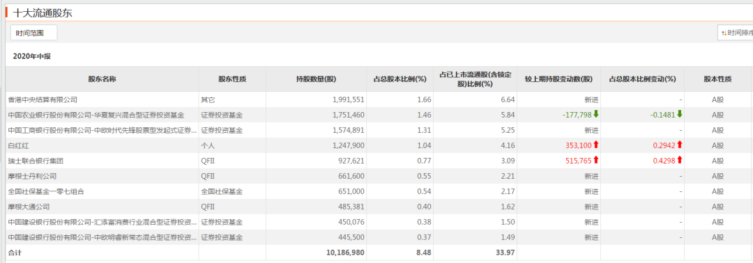 6月初,港交所官网披露了沪深股通样本股名单的定期调整情况。而半年报数据显示,6月15日新纳入的159只个股中,已经有38只个股的十大流通股东名单中新出现“香港中央结算有限公司”。