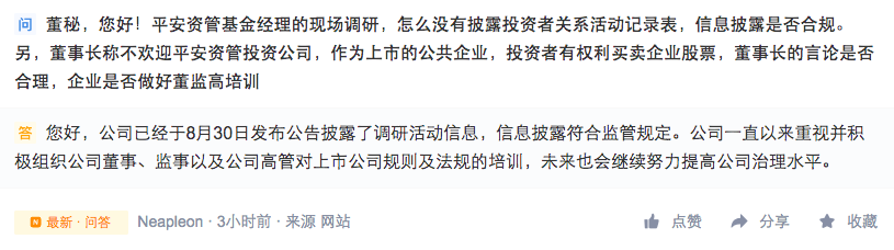 9月1日,有投资者在互动平台上提问“董事长的言论是否合理,企业是否做好董监高培训”。