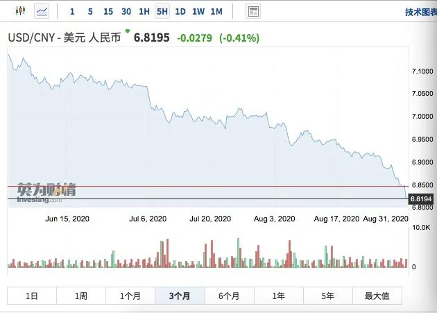 事实上,近期随着美元指数的持续走软,人民币兑美元汇率逐步攀升,仅近10个交易日升值幅度就近2%。若从5月27日的7.1687算起,人民币在短短3个月内,大涨近3500点。在岸和离岸人民币已升至逾一年高点。不少业内人士分析认为,美元指数短期内尚未“跌透”,未来人民币超预期升值可能来自实体部门集中结汇、美元超预期下行。浙商证券近日甚至重新上调人民币兑美元汇率中枢至6.75,上限为6.6,下限为6.9。