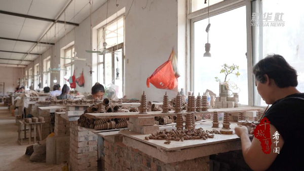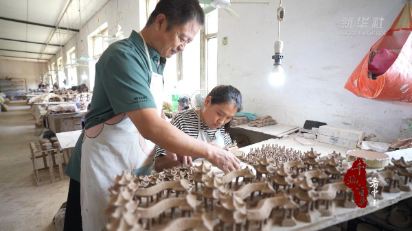 近日,在河北省广宗县后平台村,妇女们正在车间学习非遗盆景装饰件制作技艺。