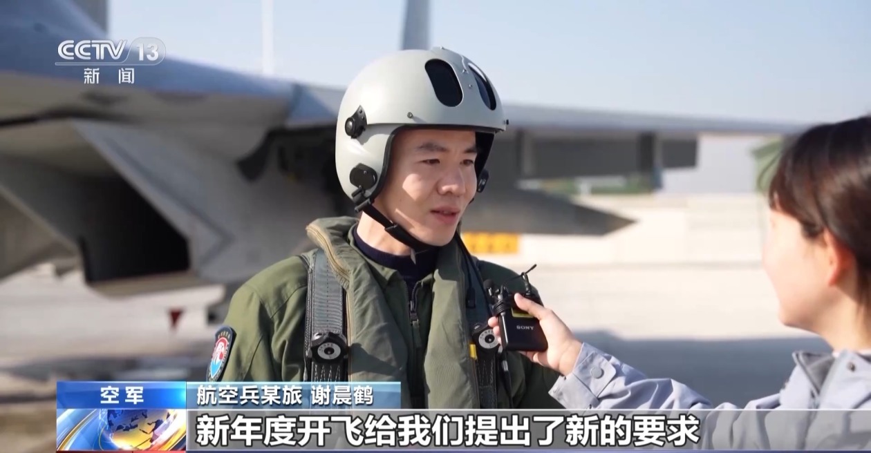 空军航空兵某旅 谢晨鹤:新年度开飞给我们提出了新的要求,今天的训练设置更加融合了实战,也结合了很多任务的因素在里面,也是对新年度提出了更高的要求。在新的一年,也希望我们的技术能够更加精进,能更加出色地执行好任务。
