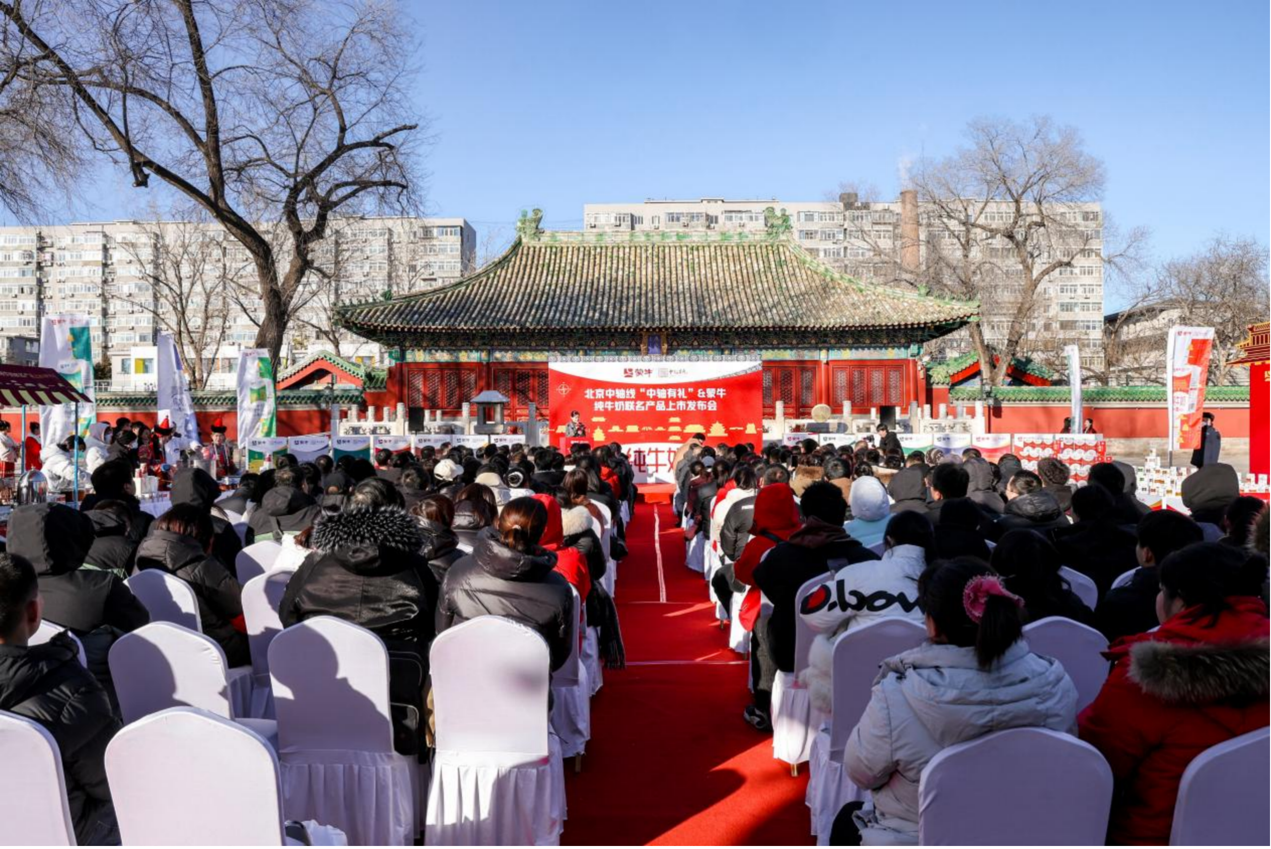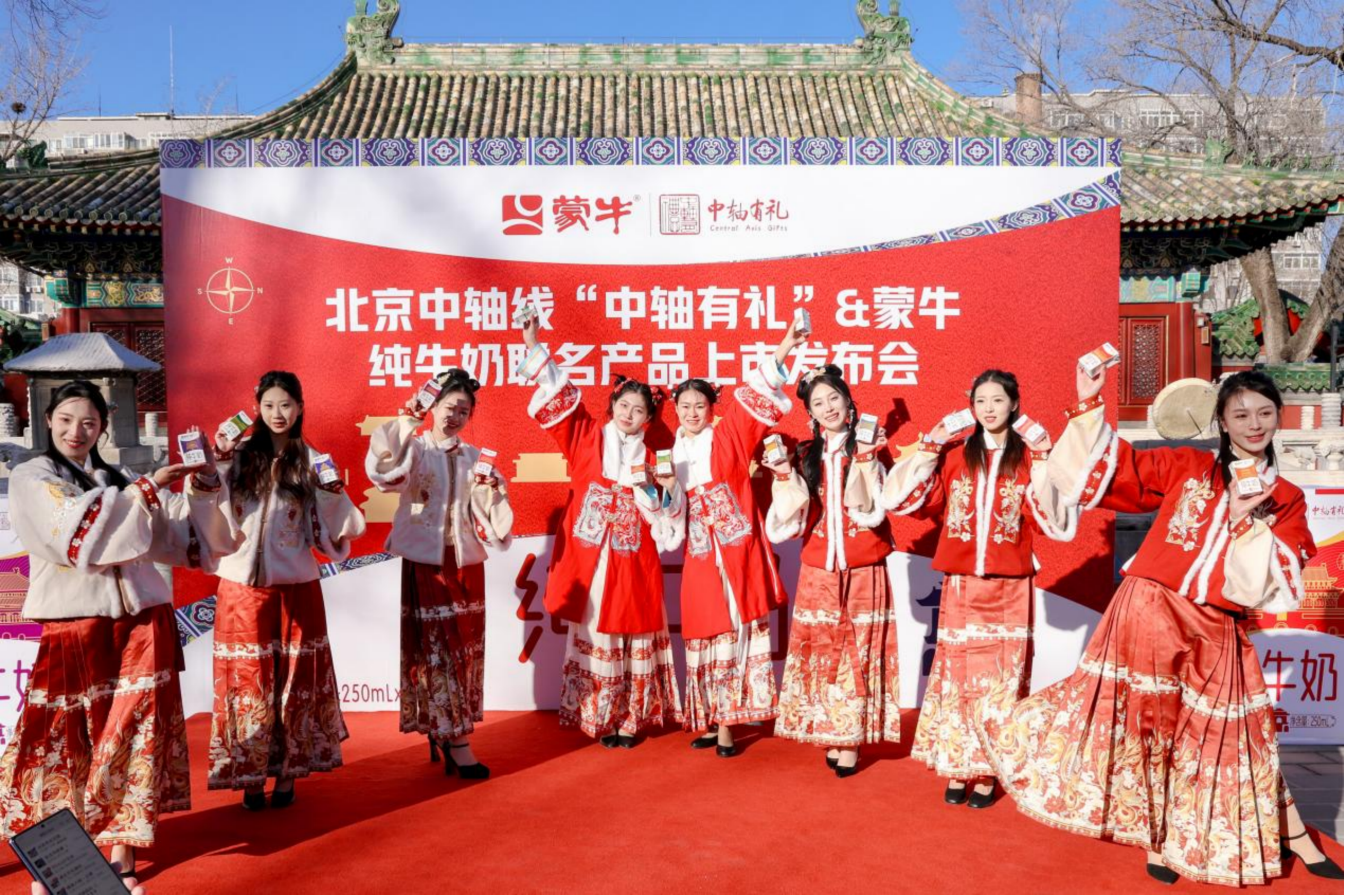 12月29日下午,一场联结历史与当下的发布活动在北京中轴线遗产点之一的先农坛庆成宫举行。北京京企中轴线保护公益基金会与内蒙古蒙牛乳业(集团)股份有限公司在此共同发布联名产品——“中轴有礼”定制装纯牛奶。此次活动以“传承中轴 滋养新生”为主题,标志着国民乳业品牌与超级文化IP的一次深度携手,探索文化遗产的活化传承新路径。