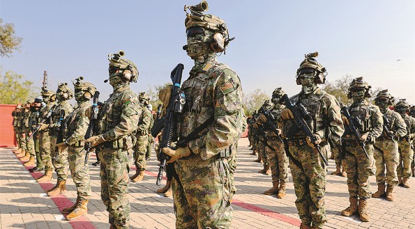 中巴“勇士-9”反恐联合演习举行中方参演官兵在演习开始仪式现场。王连彬摄12月1日,中巴“勇…