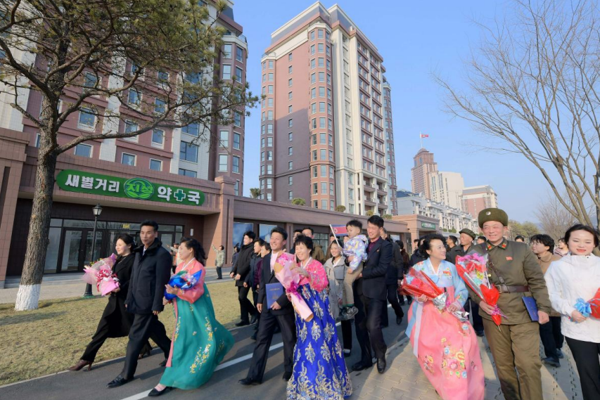 敬爱的金正恩同志视察开业在即的和盛地区第四期区域一些服务设施
