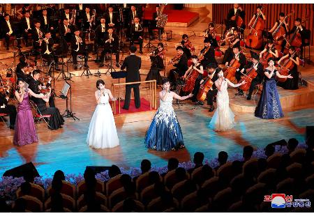 朝中社平壤7月3日电国务委员会演奏团演出2日在三池渊剧院拉开帷幕。平壤市内创作家和文艺工作者观看…
