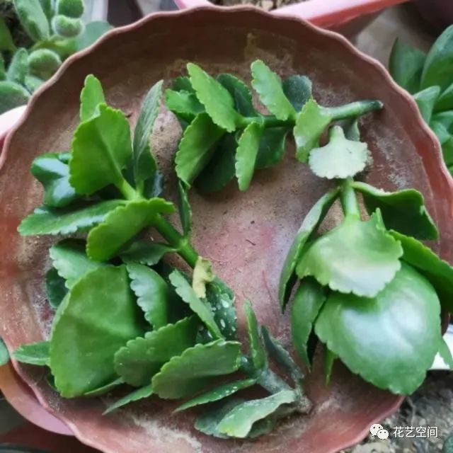 用枝条扦插也有两种枝条,第一种是顶芽扦插,第二种用刚刚开败的花枝进行扦插,用这两种枝条进行扦插繁殖,长寿花的成活率超高,基本丢到土里,7到10天就可以看到长出新的叶片,但此时不要着急,因为长寿花并没有长出根性,长出根系还需要等待几天。