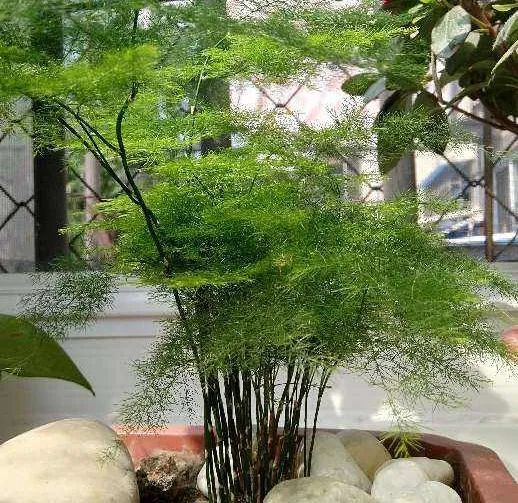 在授粉的时候应该注意哪些养护条件呢?其中一个很重要的要点就是通风,因为它喜欢的是半散射光的环境,很多园友为了不让它太晒,因此在家里养护文竹的时候就将它放在室内远离窗边的位置,所以这也导致了空气的不流通,这样开花之后花粉很难传授,那么它也就不会长出小种子了。