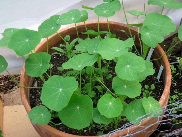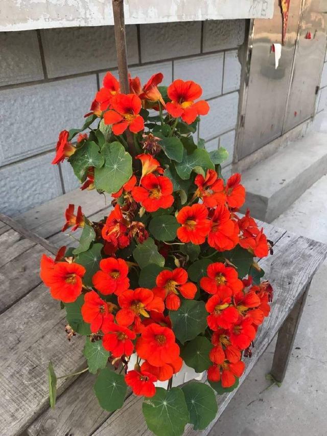 阳台养盆栽旱金莲,土、肥、水、光照适宜,常年有花可赏